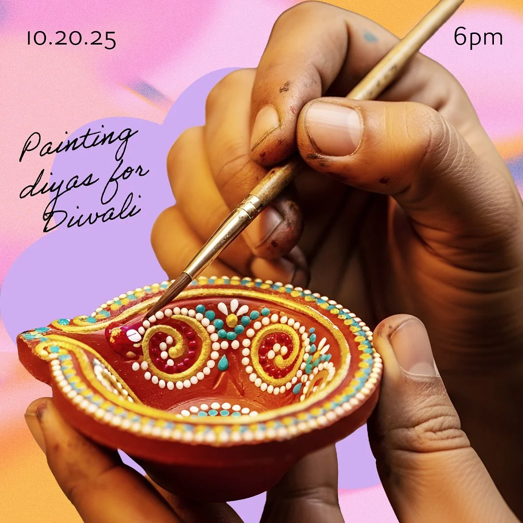 For our craft, we’ll be painting diyas for everyone to bring home a little piece of community and culture. No supplies required, we’ll provide those.